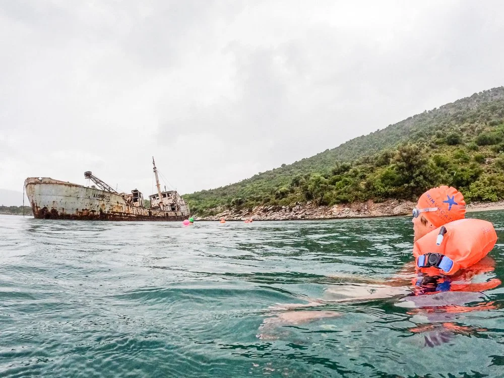This stretch of shallow sea floor is where we found last week’s mini-mystery: The Urchins Wearing Hats. In many places around the world, Sea Urchins have been observed decorating themselves with rocks, shells, algae, bits of flotsam and jetsam and even the skeletons of other dead urchins. No one is certain why they do this, though it appears to be a sort of sub-sea armor, perhaps protection against predation, desiccation in the intertidal zone or possibly even against UV rays. What I find most interesting about this prickly story is that this particular stretch of shore line is the only place where we have witnessed this behavior en masse. We see urchins everywhere in Greece, and sometimes they have hats. But here, they ALL do, and they all have A LOT of hats. I shared what I knew about this spiny situation with the gang and they were fascinated. I love this. Even on a cold, rainy swim, my swimmers are truly enthusiastic and interested in something as small as a hatted sea urchin and the mystery surrounding it.