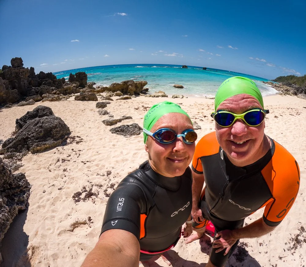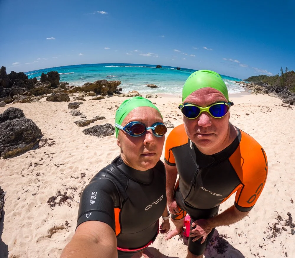 We stepped onto the pink sands of the beach at Church Bay, and took our time putting on our “shorty” wetsuits, enjoying the scenery and planning our swim. As we were about to enter the water, we noticed 2 Portuguese Man O’ War washed up on the beach. We’ve been in this exact predicament before: jellyfish on the sand, yet we want to swim. The last time this happened we jumped in anyway and Heather got a nasty sting. This time, we asked ourselves “what would we do if we had guests with us”? The obvious answer was that we’d abort the mission, and find another spot, so that’s exactly what we did.