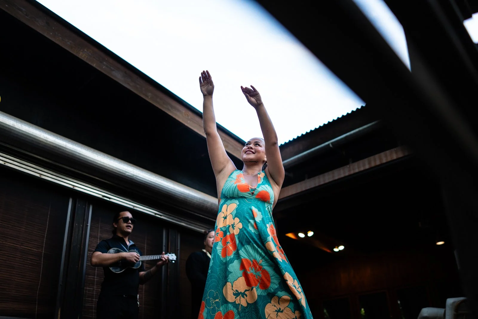 We hiked back to our hale just in time for the evening’s entertainment - traditional Hawaiian music and hula dance. The trio of Kahi, Luna, and Angel performed for us, and even gave a Hula lesson to our guests.