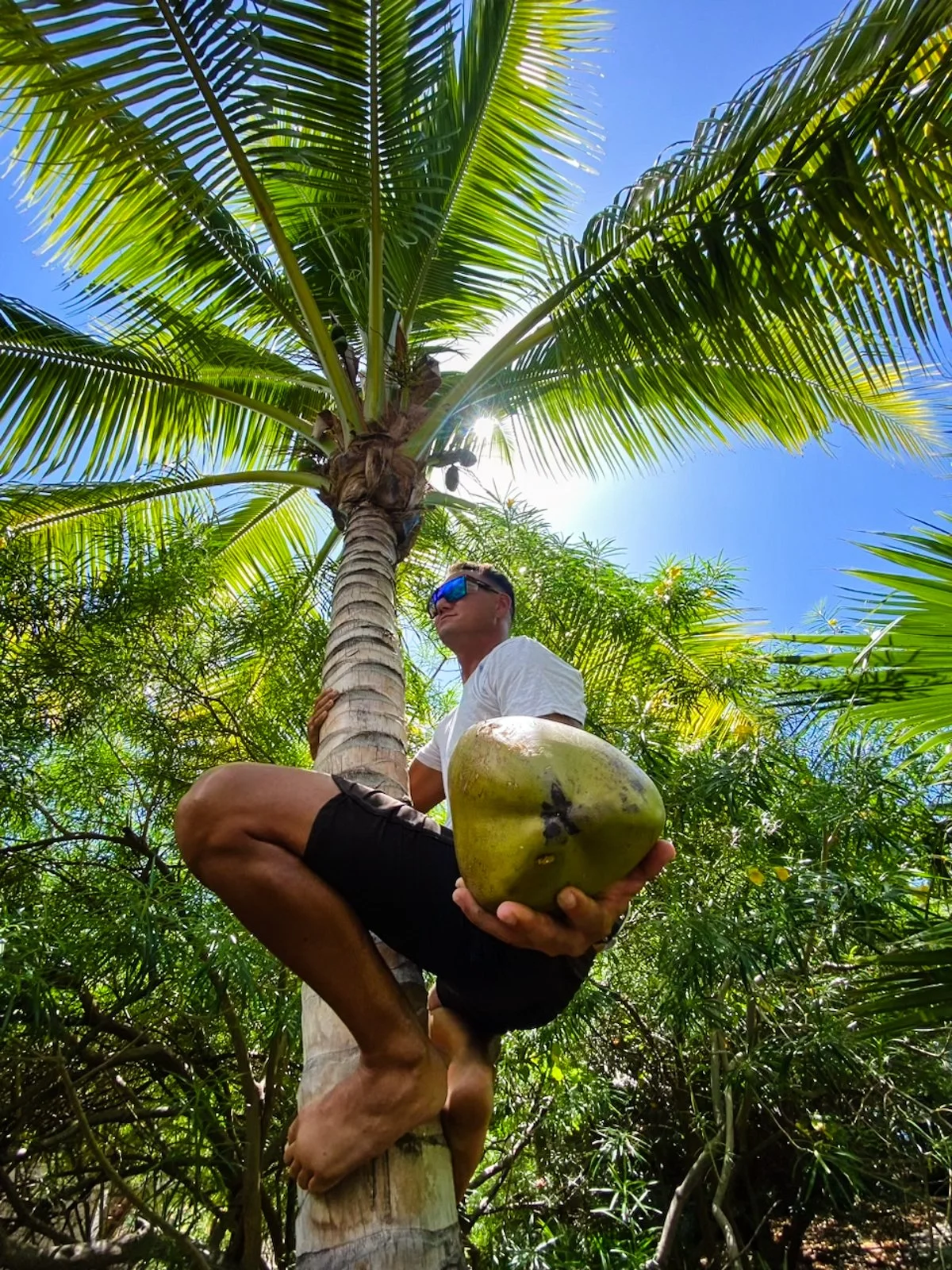 Kekau climbed one of our coconut trees and harvested 5 winners! He expertly cracked them, added umbrellas and straws. Pro Hawaiian stuff here.
