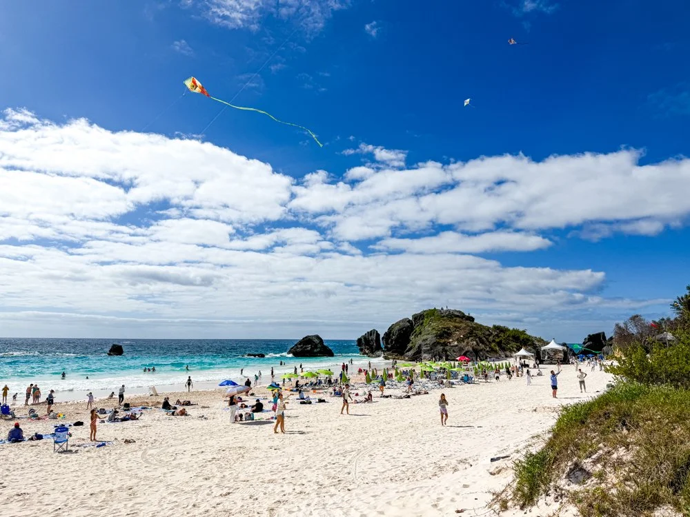 Kites and crowds for Good Friday at Horseshoe Bay Beach - the pinkest beach in Bermuda. - HP